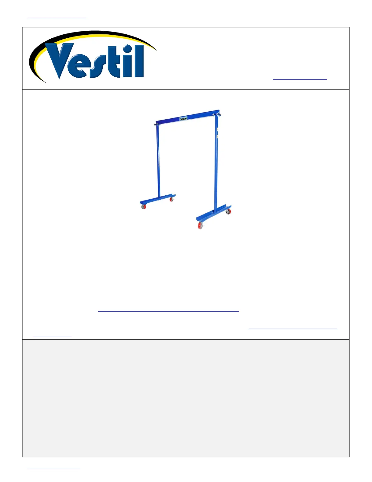 TABLE OF CONTENTS Copyright 2021 Vestil Manufacturing Co. Page 1 of 11