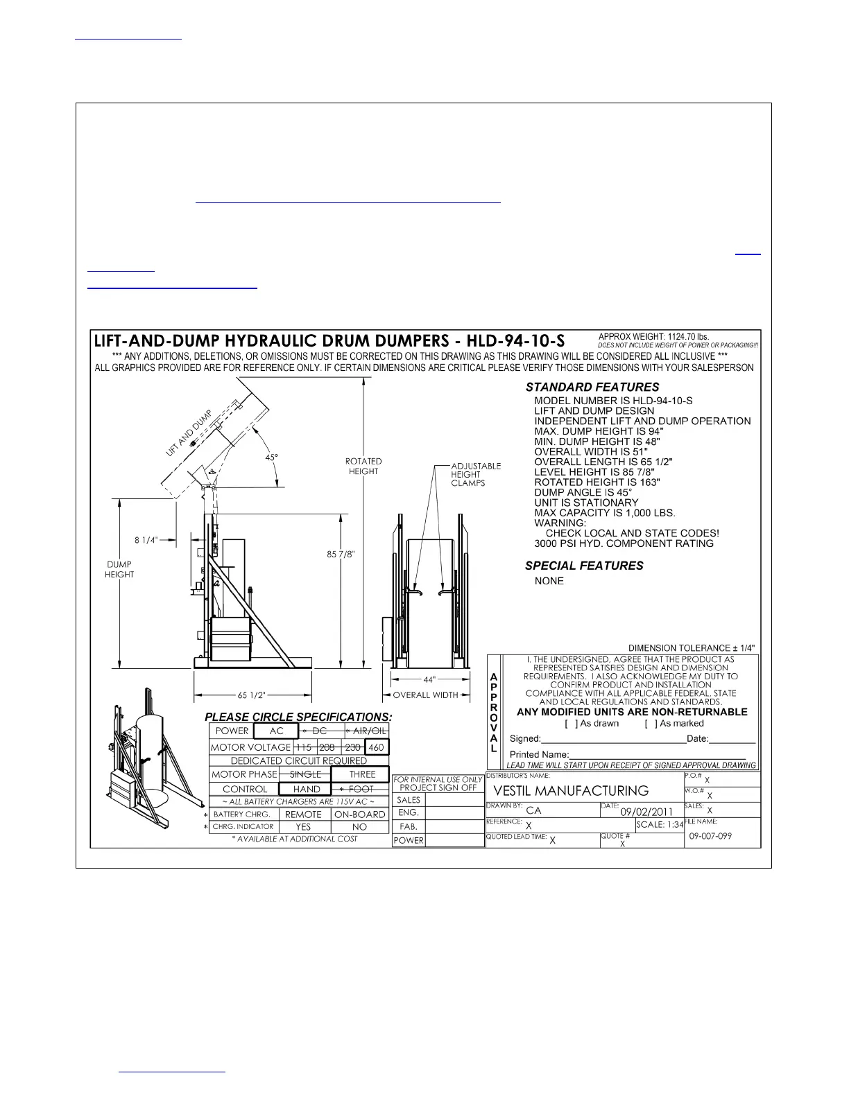 online to anyone who visits Vestil’s website. Specifications include dimensions, net weight, and