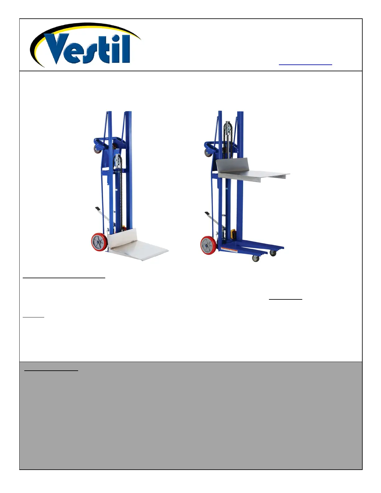 Copyright 2015 Vestil Manufacturing Co.Page 1 of 18