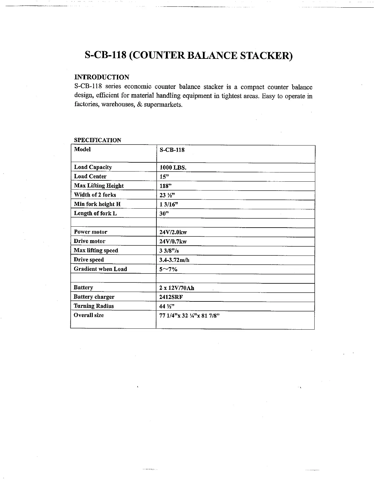 Vestil S-CB-118 Bruksanvisning