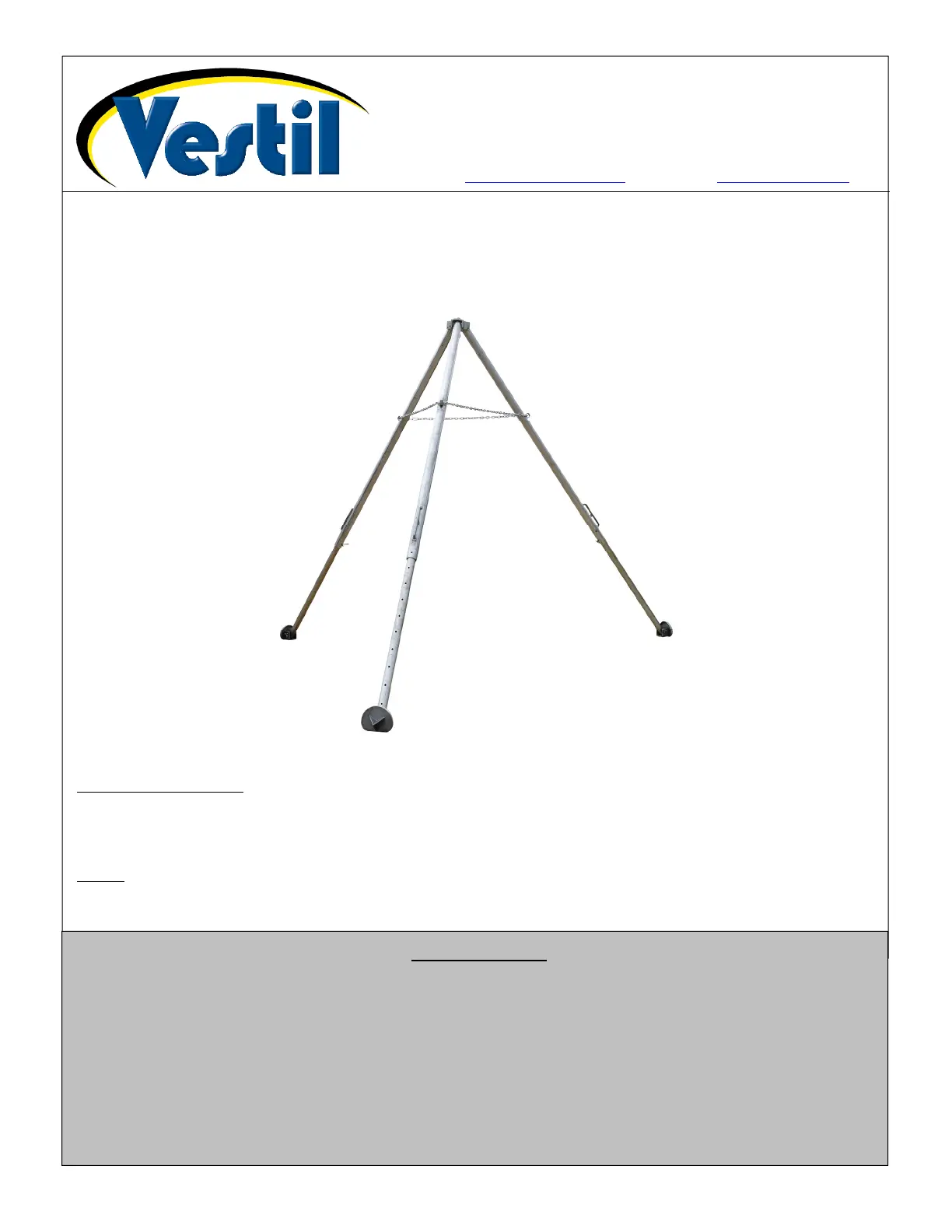 Vestil TRI-AA Bruksanvisning