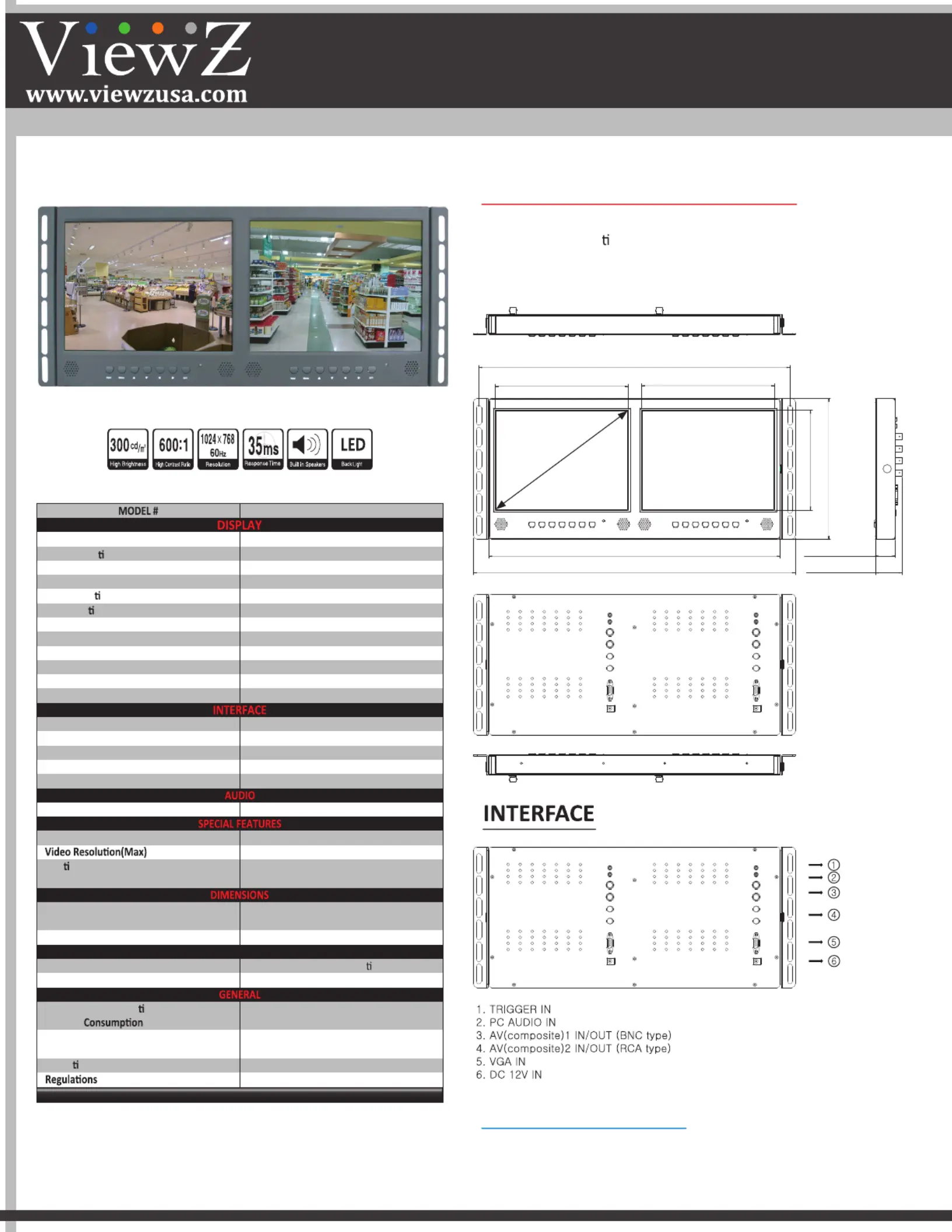 • Dual 9.7” Display LED Rack Mount Ready