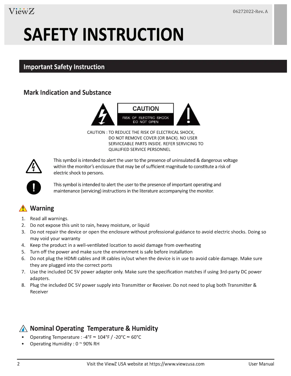 ViewZ VZ-1TRX-4K Bruksanvisning