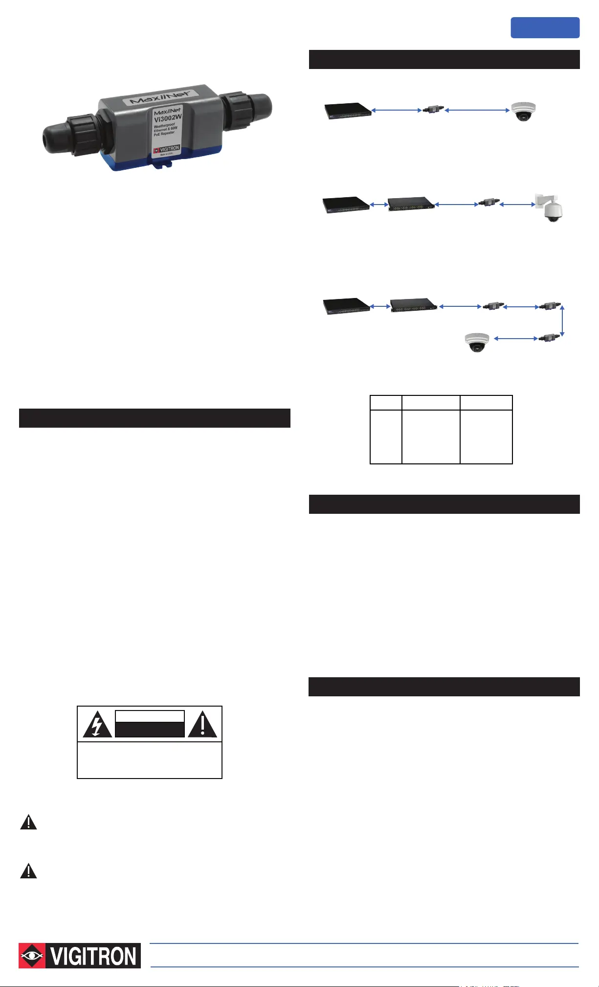 Vigitron’s MaxiiNet™ Vi3002W is an Ethernet and 60W PoE repeater that