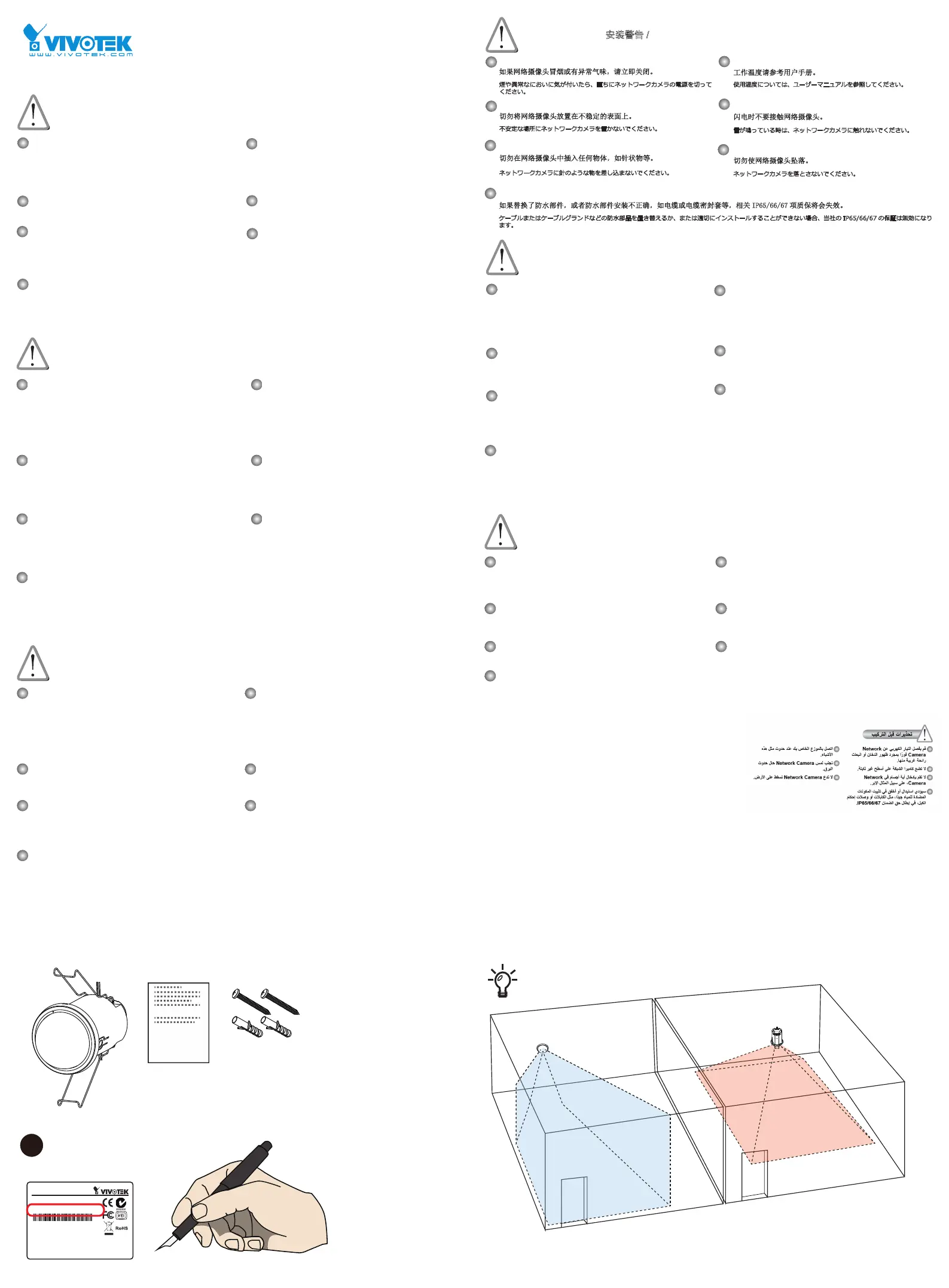 如果更換或是沒有正確安裝防水元件 ( 例如纜線或纜線固定頭 ),將使本公司 IP65/66/67 的保固失效。
