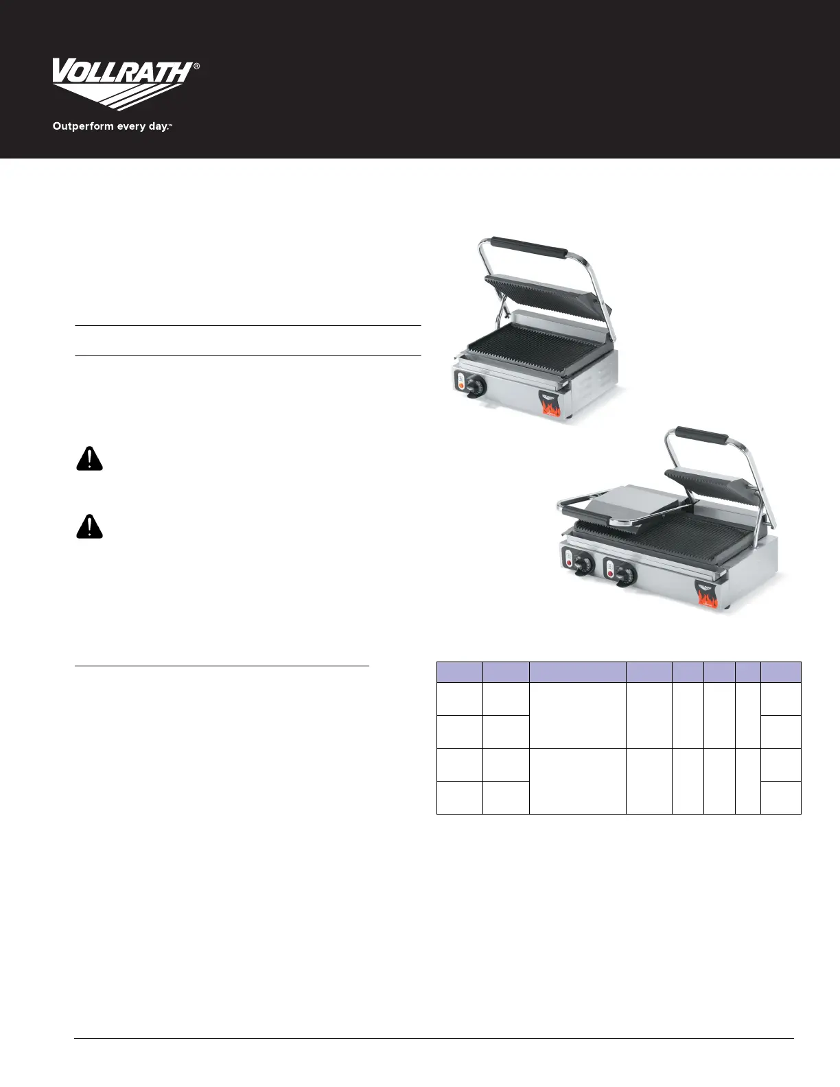 grill platta Vollrath Manualer