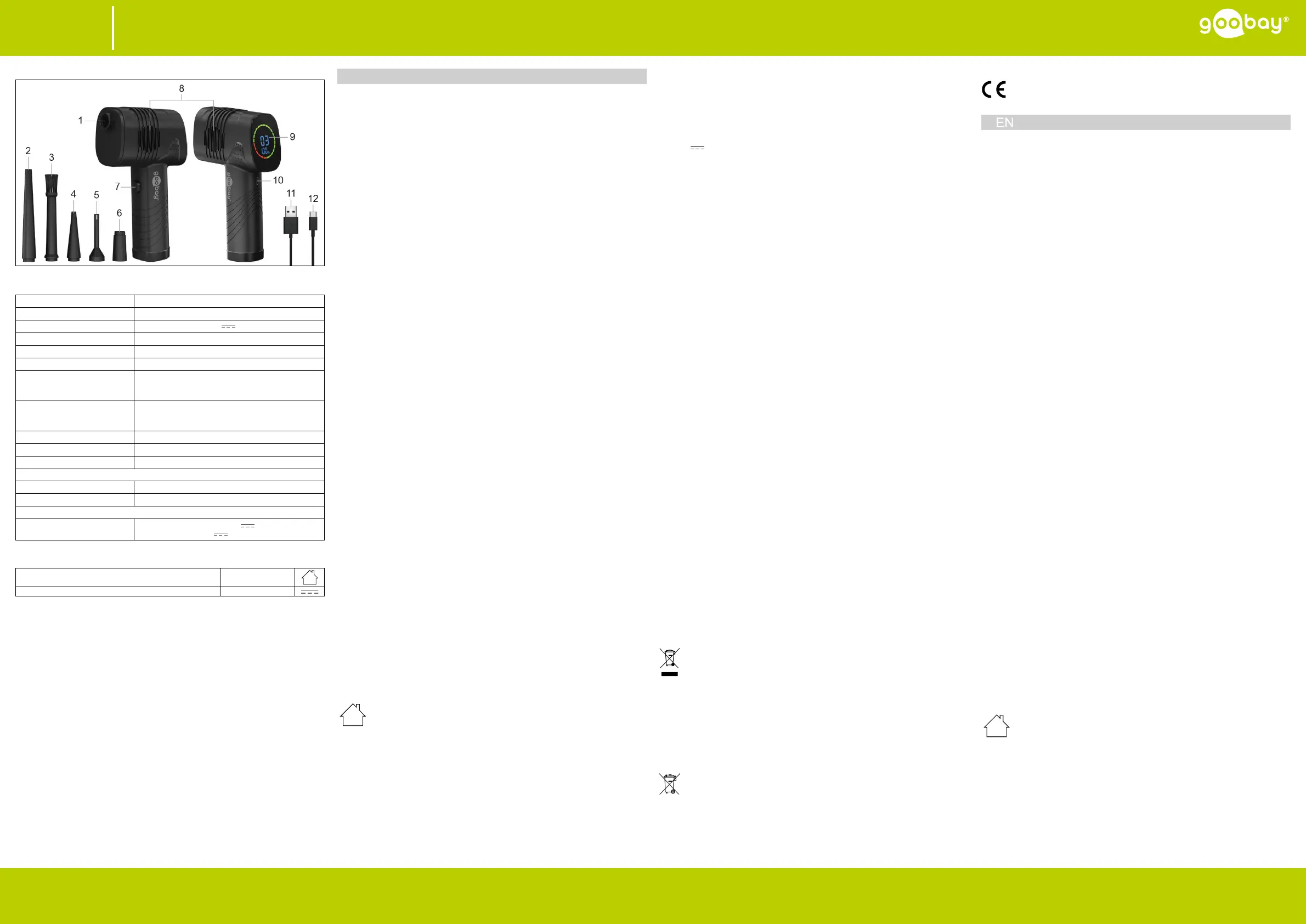 less cleaning of e.g. PC accessories and for inating objects such as air mattresses. It has an in-