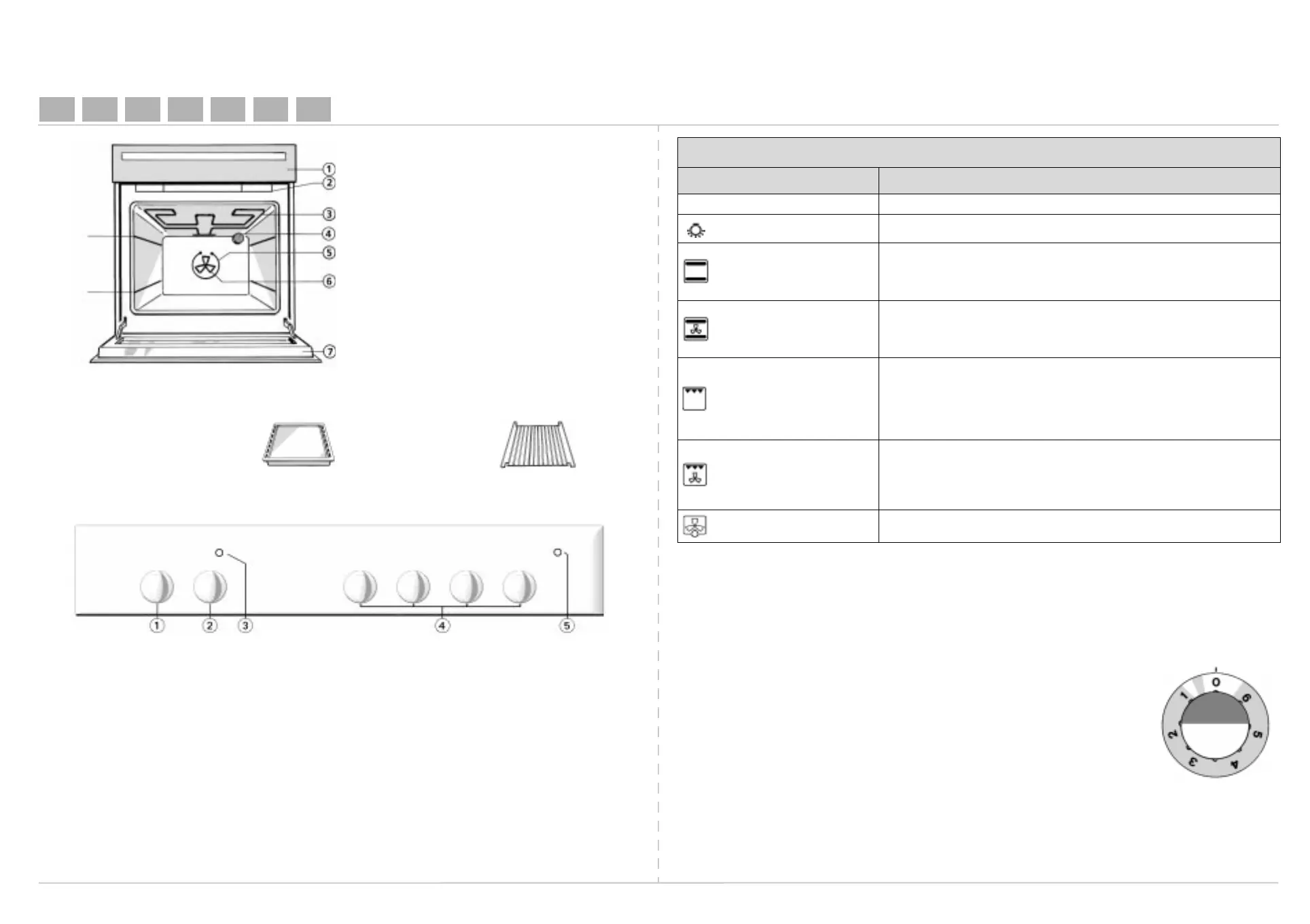 Oven functions table