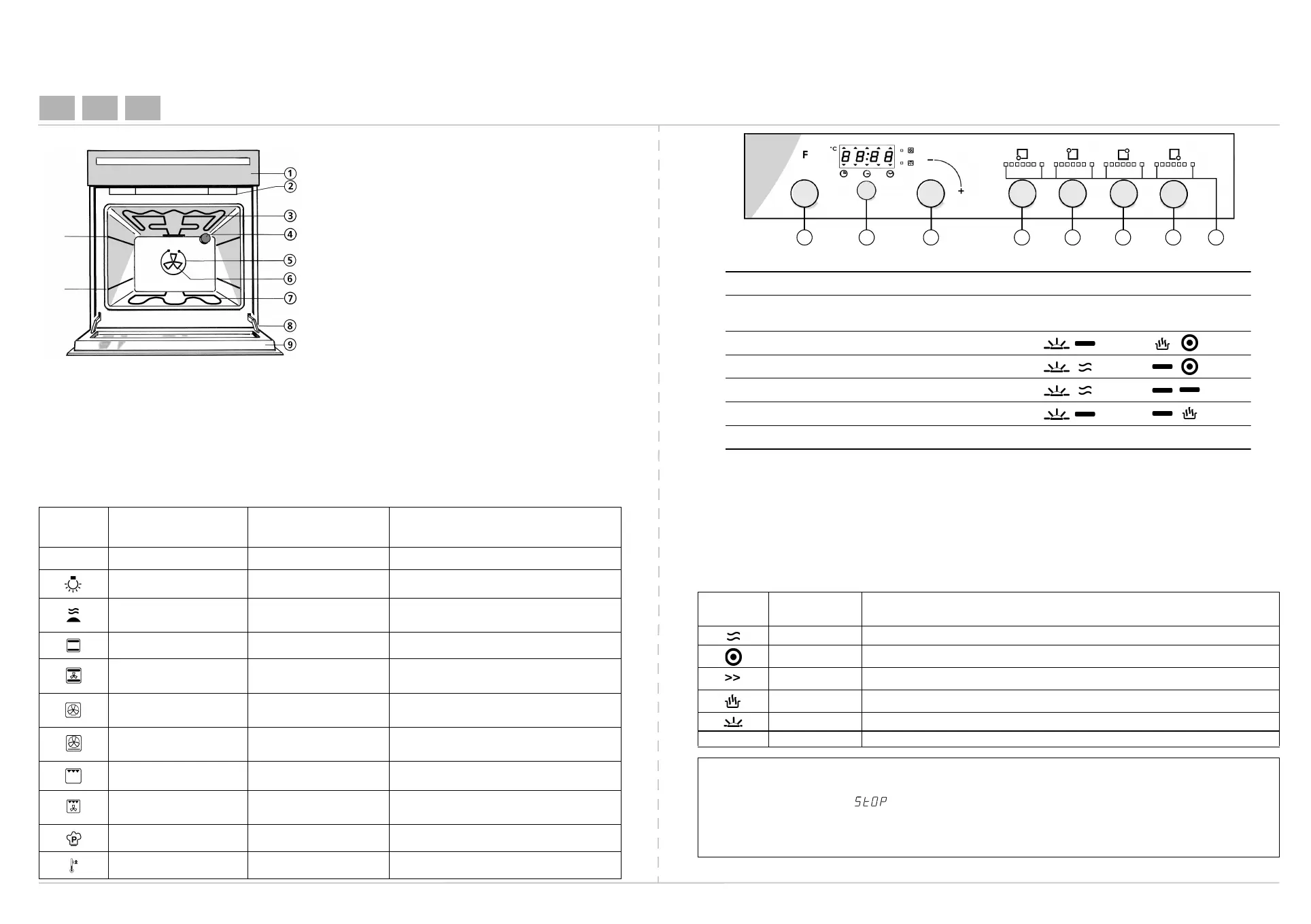 OVEN FUNCTIONS TABLE