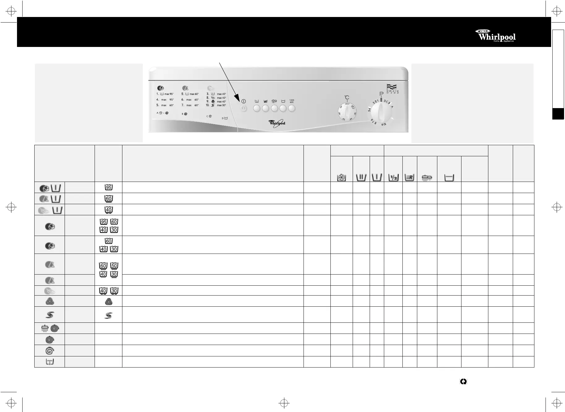 Läs gratis den bruksanvisning för Whirlpool Imola (2 sidor) i kategorin tvättmaskin. Guiden har ansetts hjälpsam av 32 personer och har ett genomsnittsbetyg på 4.5 stjärnor baserat på 9 recensioner. Har du en fråga om Whirlpool Imola eller vill du ställa frågor till andra användare av produkten? Ställ en fråga