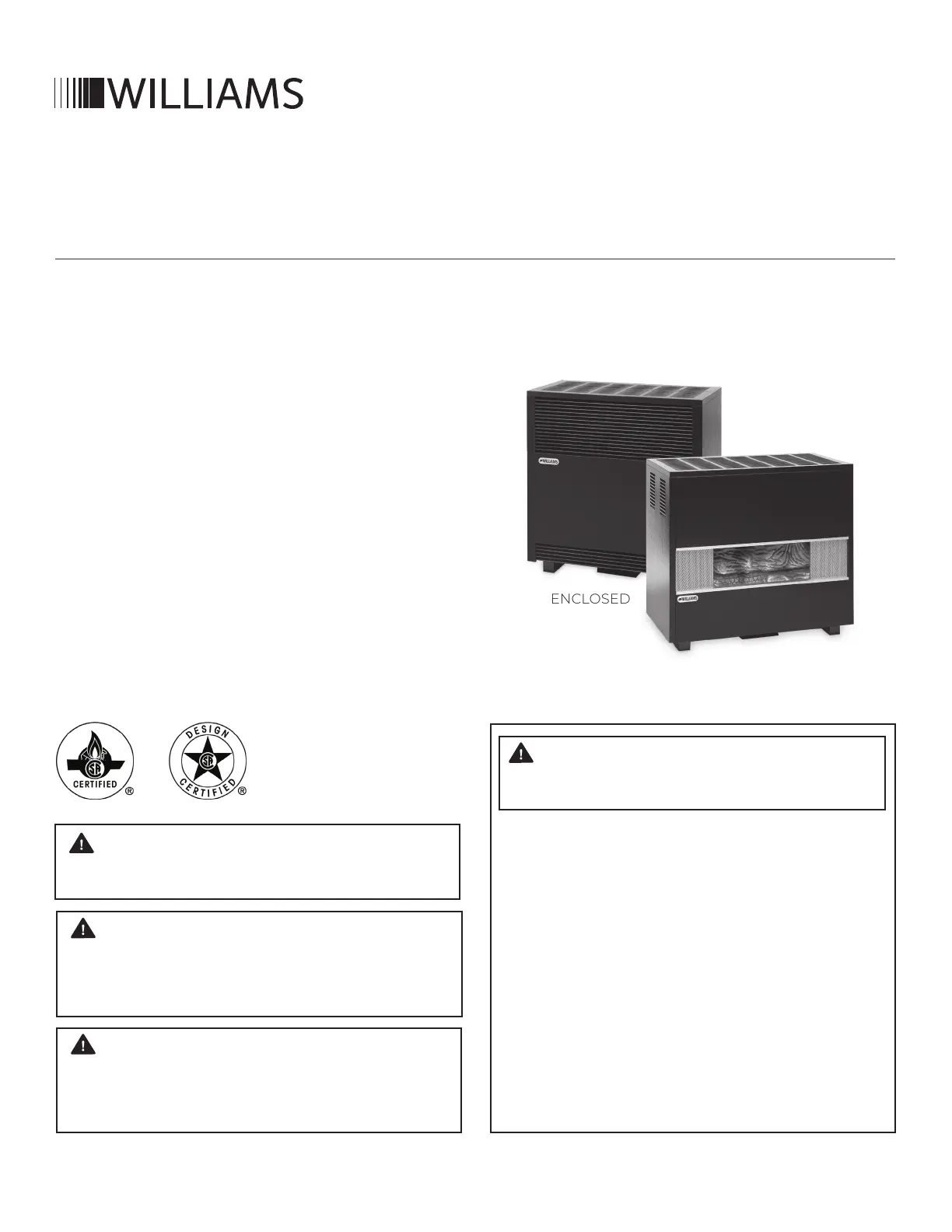 INSTALL YOUR NEW WILLIAMS WALL FURNACE.