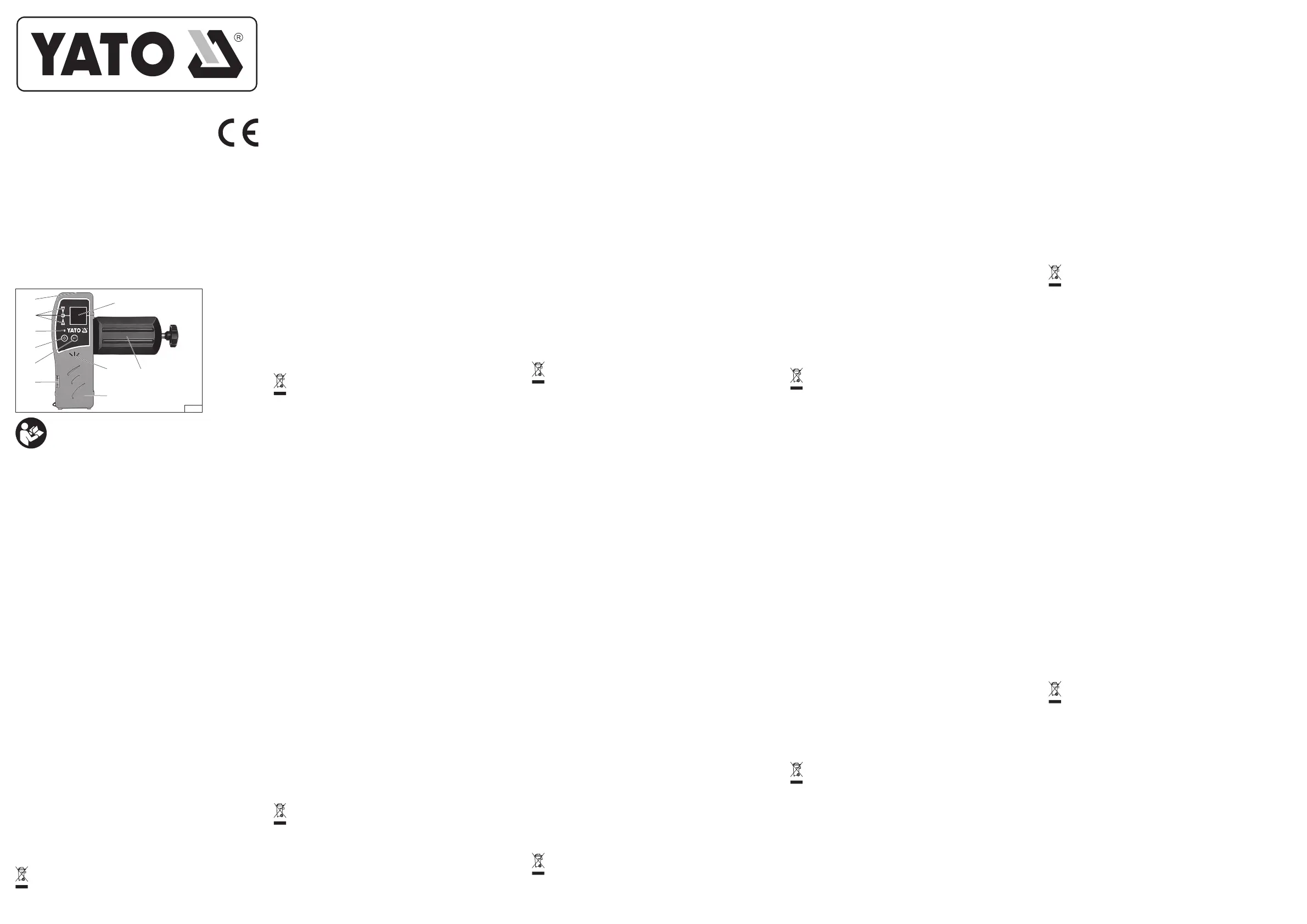 Läs gratis den bruksanvisning för Yato YT-30421 (2 sidor) i kategorin laservattenpass. Guiden har ansetts hjälpsam av 2 personer och har ett genomsnittsbetyg på 4.8 stjärnor baserat på 4 recensioner. Har du en fråga om Yato YT-30421 eller vill du ställa frågor till andra användare av produkten? Ställ en fråga