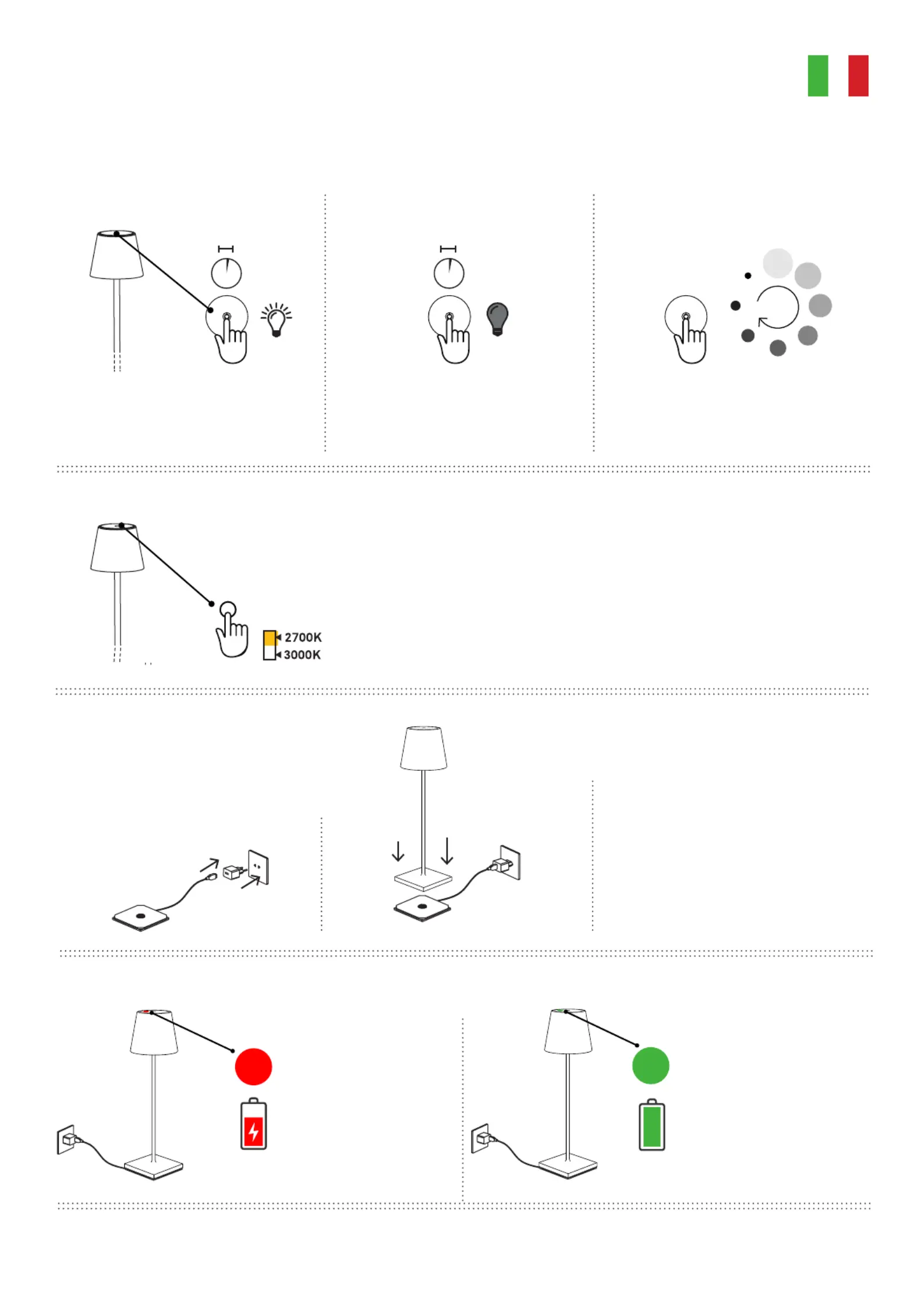 3) appoggiare la lampada sulla base di ricarica;