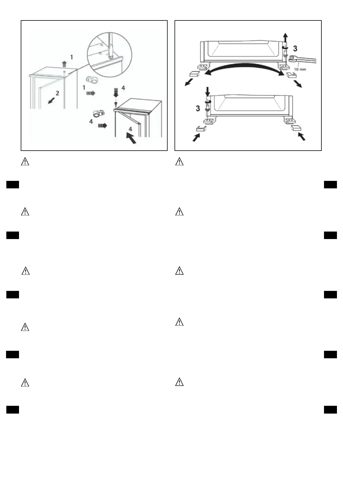 4. Die Tür wieder einsetzen, den oberen Zapfen und das Distanzstück auf der